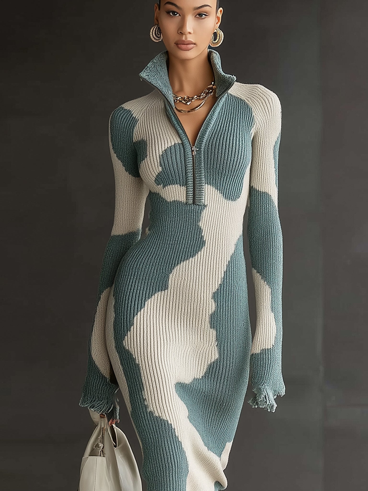 Black And White Stitching Knitted Maxi Dress$46.99 USD