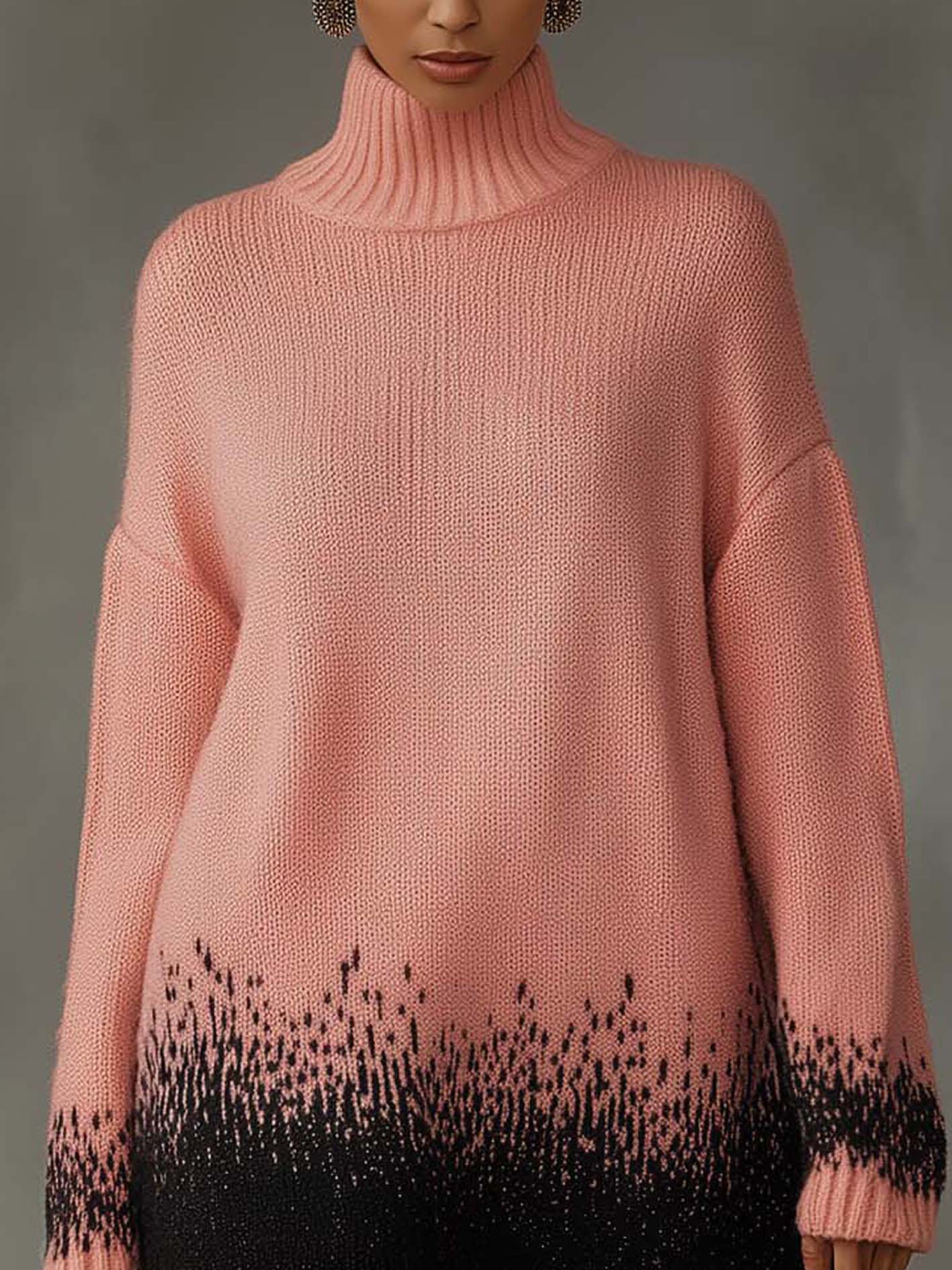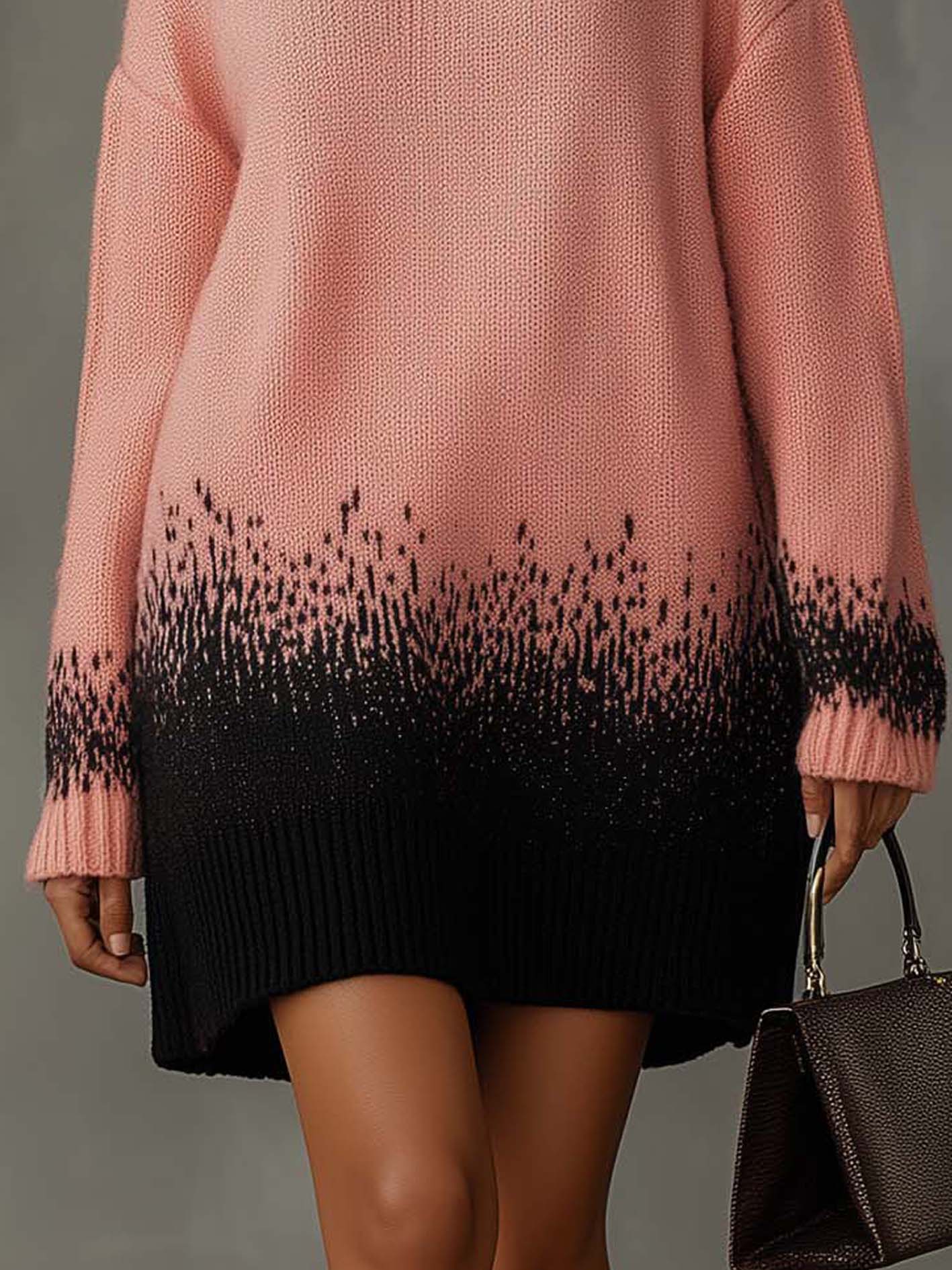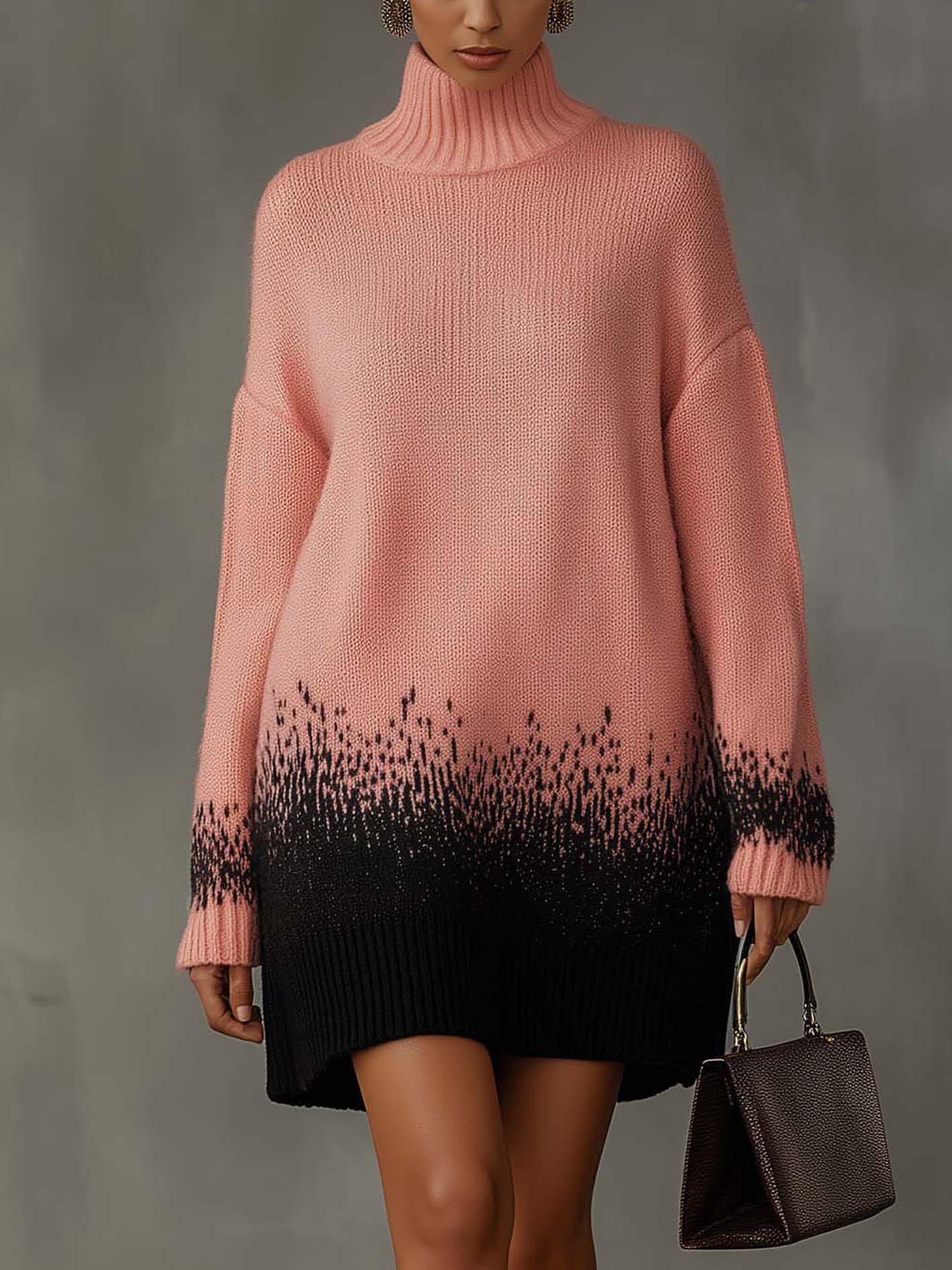 - Design: Features a pink-to-black gradient effect that transitions smoothly from the bodice to the hem, adding depth and modern flair. The turtleneck enhances coziness while offering a polished silhouette.