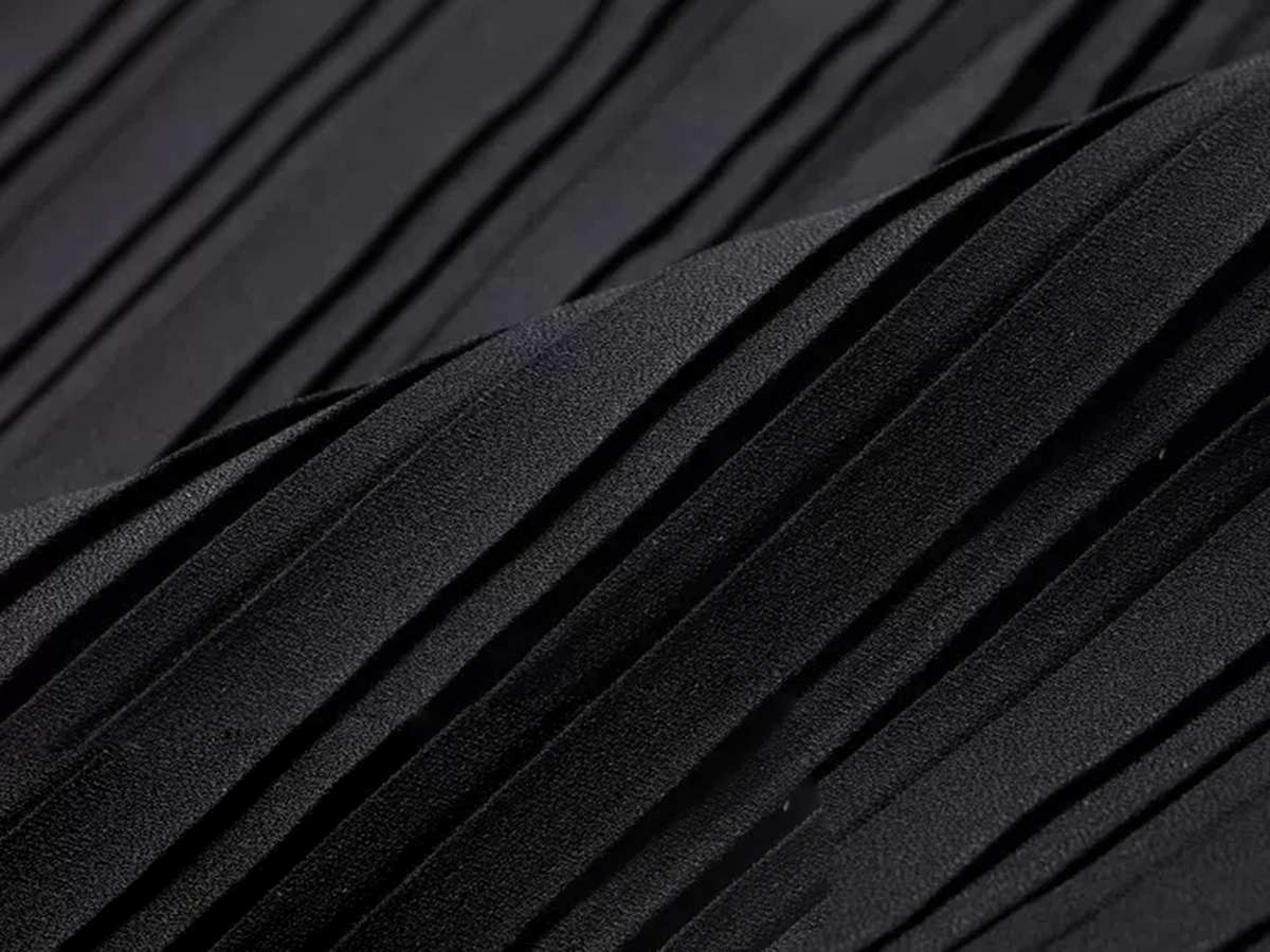 Pleated skirt design adds dynamic flow